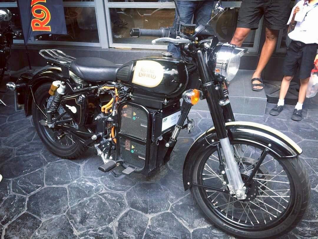 WWW.IN-MOTO.RU Судя по всему, скоро стоит ожидать серийной версии Royal Enfield с электромотором, слухи о которой ходят уже давно. На днях, электрическая версия индийского Royal Enfield Classic 500 была замечена ни где-нибудь на испытаниях и вся в камуфляже, а сразу у одного из тайских дилеров марки. Модель не выставлена на продажу, а скорее выставлена как экспонат для привлечения клиентов, но в целом можно говорить о скором запуске конвейера по производству "зеленых" Энфилдов. Хотя компоновка и выглядит достаточно "колхозной", явно видна работа инженеров. Для интеграции электромотора с неизвестными пока характеристиками, инженерам пришлось доработать раму, сменить цепь на ремень и изменить заднюю подвеску. Так же электро Royal Enfield Classic обзавелся багажником вместо пассажирского сиденья и цифровой приборной панелью, что вообще впервые можно увидеть на Royal Enfield. WWW.IN-MOTO.RU Даты релиза, как и стоимость будущей новинки не сообщаются, но судя по всему, новые подобности не