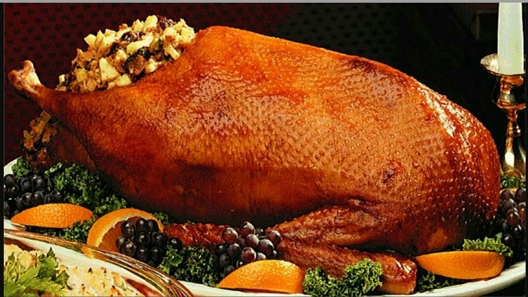 Гусь к рождественскому столу -это традиция исконно русская, а индейка -американская. И что приготовите вы, это дело как, говорится хозяйское. Главное выбрать свежую и упитанную птицу, лучше будет, если она произведена по ГОСТу, так вы оградите себя от влагоудерживающих, цветосохраняющих компонентов и наличия рассолов в мясе. Птицу для жарки следует выбирать молодую, она мягче. Вот так должна выглядеть идеальная тушка индейки: вес должен быть от 5,5 кг(это оптимальное соотношение мяса и костей), кожа: светло-желтая или желтовато-розовая, незначительная пигментация допустима.. А вес молодого гуся колеблется в пределах 3,5-4 кг. Главные отличия мяса двух великолепных птиц- это калорийность (у индейки-всего 84 ккал на 100 грамм, а у гуся -примерно 365 ккал), то есть по своему составу гусь более жирный. А триптофана, аминокислоты , которая нужна для выработки серотонина, "гормона счастья" достаточно и в гусях и в индейке. Хочу заметить, что менее гипоаллергенной является индейка. Для