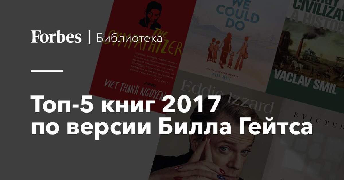 Основатель Microsoft Билл Гейтс каждый год подводит итоги и рассказывает о книгах, которые успел прочитать. Предприниматель опубликовал список лучших книг 2017 года на своем сайте. «Чтение до сих пор самый любимый способ потворствовать моему любопытству, – пишет бизнесмен. – Несмотря на то что мне посчастливилось встретить много интересных людей и посетить завораживающие места, я до сих пор считаю, что книги – лучший способ изучения новых тем, которые меня интересуют». «Лучшее, что мы могли сделать» Графический и автобиографический роман о родителях Тхи Буй, которые покинули Вьетнам в 1978 году. «Меня поразило то, как опыт семьи Буй может быть универсальным и в то же время особенным. Любой родитель узнает проблемы, с которыми сталкивались ее мать и отец, воспитывая четверых детей. Мне кажется, она отлично сумела поймать то пугающее чувство, что ты ответствен за свою семью. В то же время жизнь ее семьи отличается от большинства. Понятно, что большая часть проблем в их детстве