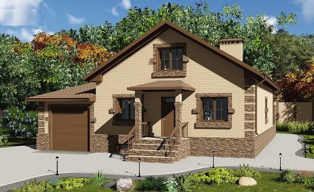 Площадь: 207.91 м2 Площадь застройки: 188.89 м2 Гараж на 1 автомобиль Высота дома: 6.78 м Габариты: 14.44x11.40 м Стены: газобетон, Облицовка: кирпич.