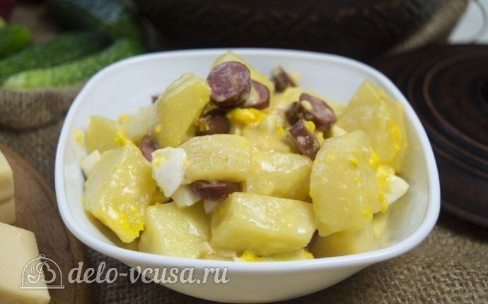 1. Картофель отварить в кожуре почистить и нарезать кусочками.