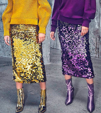 Кажется, от Москвы до самых до окраин, через Париж, Нью-Йорк и Новые Васюки каждая уважающая себя модница была на новогодней вечеринке в пайетках. По крайней мере, если полистать любую соц сеть, то в глазах начинает слепить знатно от этого пайеточного блеска. По этому поводу все стилисты пайеткам предрекают скорую смерть. Вот, буквально, на Новый год надели, и все. Ну ладно, еще на 8 марта. После этого уже точно - прости, прощай, меня не вспоминай! Хотя вот на моей памяти эти пайетки туда - сюда в моду из моды гоняют последние лет пять точно. Кажется, четыре года назад я купила себе юбку в пайетках, потому что уже тогда это было очень модно. Это я к вопросу, который мне очень любят задавать "скажите, а такое еще можно носить или уже нет?" Поэтому сим постом выдаю всем желающим модную индульгенцию на ношение пайеток еще, как минимум, на год. Возможно, не такой вырвиглазный вариант, как на картинке, особенно если ваше окружение не уходит табором в небо. Менее кричащий вариант запрос