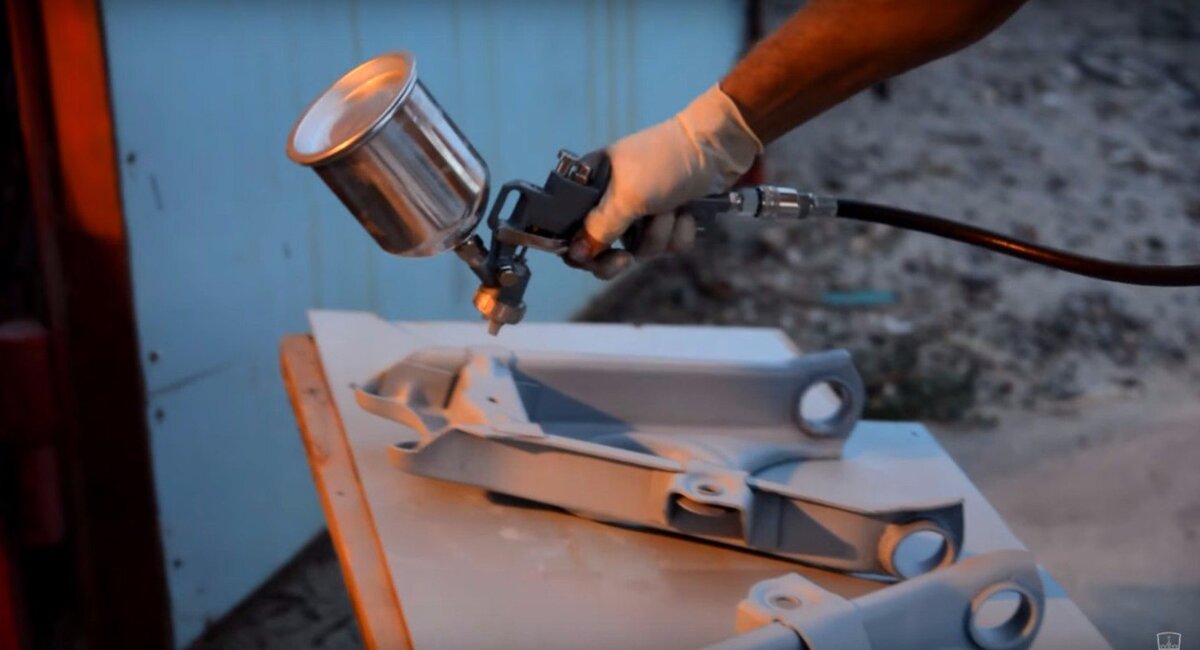 В этот раз - занялся очисткой и окраской деталей подвески. Очистить рычаги и балку от окислов было делом непростым, учитывая их сложную форму, но так или иначе, с помощью описанного в прежних записях пескоструя и иных методов, дело было закончено, и предстояло покрасить мои элементы. Одним из принципов моей работы над этим автомобилем является такая вещь, что все работы я должен провести сам. Поэтому варианты с порошковой краской и прочими вариантами "на стороне" были отвергнуты. Красил по такой схеме - на обезжиренный голый металл - эпоксидный грунт, после него - обычный акриловый (небольшим слоем), после чего - окрашивание в чёрный цвет. Звучит просто, на практике тоже ничего сложного, рычаги, тормозные щиты и иные мелочи были успешно окрашены. Значительную часть хронометража я отвел на расписывание всей технологии, и почему всё было сделано именно так, а не иначе. Вообще, покрасочное дело оказалось очень интересным, и сам процесс мне тоже очень понравился, однако не стоит забыв