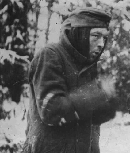 Встали мы на отдых в деревне Морицы. Погода отвратительная, грязно, холодно, да вдобавок снег выпал. У меня шуба мадьярская была, накинул я ее на плечи и вышел на улицу. Темно, слякотно. Вижу, стоит часовой у кухни, стоящей возле штаба. Съежился, перетаптывается. На нем какой то малахай драный. А зимой у нас мало кто по форме одевался. Что нашли, то и носим. Я ему: - что, замерз? А он: - замерз,нихт ферштеен. Я обалдел:Иди-ка сюда! Вижу-стоит немец, за спиной винтовка. Сам от холода синий, зуб на зуб не попадает. Я у него винтовку отобрал и в дом завел. Наши все спят, кто где устроился. Разгон им устроил, едва начштабу в ухо не заехал. Спрашиваю у него:-кто стоит в охранении?