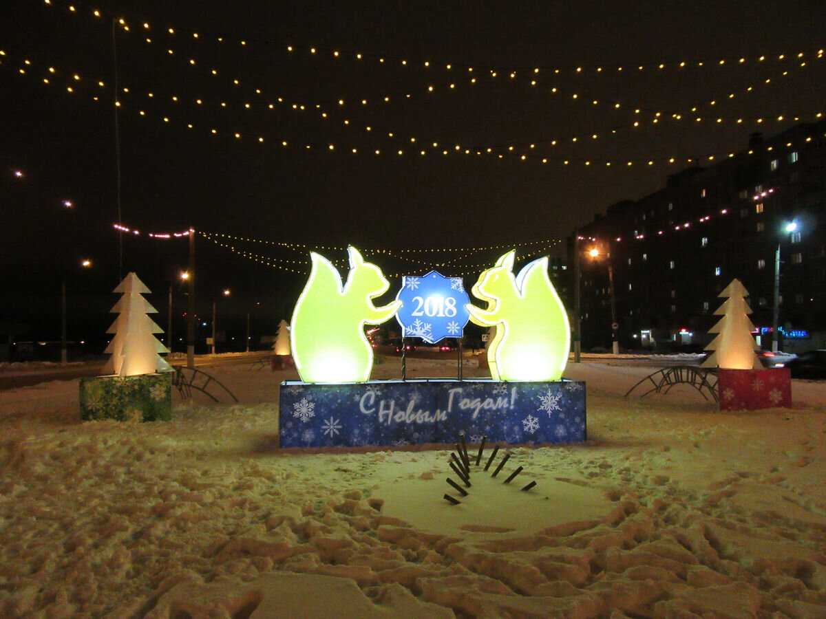 На прошлой неделе включили всю новогоднюю иллюминацию — на Соборной площади главную елку, множество композиций на площади Победы, перетяжки по ул. Советской, Винокурова, световой фонтан у входа в рощу со стороны ул. Парковой и ворота.