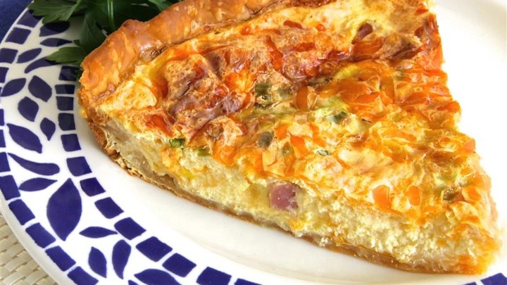 Этот сливочный пирог простой в приготовлении и очень вкусный! Подробности Категория: завтрак и поздний завтрак Продукты: основа из теста, сыр, мука, ветчина, горчица, яйца, зелёный лук, соль Посуда: железная чашка 9 дюймов, столовая ложка, чайная ложка Количество порций: 8 порций Калорийность: 327 калорий Время подготовки: 15 минут Время приготовления: 50 минут Готово через: 1 час 15 минут Ингредиенты Приготовление 1. Разогрейте духовку до 200 градусов C (400 градусов F). 2. Положите основу из теста на дно 22,86 см (9 дюймов) круглой железной тарелки. 3. Выпекайте лепёшку для пирога в предварительно разогретой духовке в течение 5 минут. Используйте вилку, чтобы высушить отверстия в корке. Продолжайте её готовить до лёгкого поджаривания, примерно 5 минут. 4. Уменьшите температуру в печи до 175 градусов C (350 градусов F). 5. Смешайте в миске 1/2 чашки сыра Чеддер, весь швейцарский сыр и 1 столовую ложку муки. Равномерно нанесите полученную смесь на тёплую лепёшку для пирога. 6. Смешайте