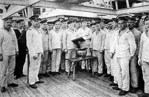Со времен парусного флота в России существовала традиция — выдавать нижним чинам во время плавания ежедневную чарку водки (1/100 часть ведра, 0,123 литра, т.е. 120 грамм). В то время, когда на парусных судах авральные работы были особенно тяжелы, в особенности в штормы, алкоголь являлся возбуждающим средством. Во время простоя судов, в промозглой зимней Балтике, алкоголь спасал моряков от воспаления легких и тяжелых простуд.
