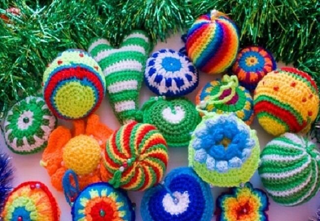Каждый год, украшая новогоднюю ёлку, родители с теплом вспоминают, как в детстве мастерили елочные игрушки. Стеклянных игрушек в послевоенное время почти не было, их покупали как великий дефицит, отстояв в магазине огромные очереди. Папа рассказывал, что заворачивал в красивую бумагу конфеты, печенья, пряники и вешал их на елку. По его словами, эти сладости были самыми красивыми и вкусными новогодними ёлочными украшениями. Мама клеила разноцветные бумажные гирлянды, вырезала снежинки, делала из ткани куколок, вязала незатейливые игрушки. Раньше дети изготавливали новогодние украшения из подручных средств, и они радовали их не меньше, чем купленные в магазине. В настоящее время с магазинах ассортимент новогодних игрушек разнообразен. На любой вкус и кошелёк можно купить всё, что угодно душе. Начиная от высоченных искусственных ёлок до умопомрочительной красоты гирлянд. Но традиция мастерить новогодние украшения осталась и по сей день. Например, связать нов