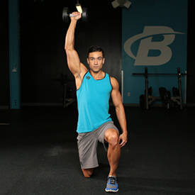 Отличное упражнение для плеч. Упражнение сложнее, чем жим гантели стоя, так как, стоя на колене, нет возможности помочь ногами. Техника выполнения: 1. Возьмите гантель нужного веса в правую руку и займите позицию стоя на одном колене на полу. Опора на правое колено, левая нога опёрта на ступню. Поднимите гантель на плечо, при необходимости двумя руками. Используйте нейтральный хват. Держите голову вверх, плечи назад, позвоночник прямо. Это будет ваша стартовая позиция. 2. Начните движение, разгибая руку, поднимая и отводя локоть, выворачивая руку как при жиме стоя. Задержите вес в верхней точке перед возвратным движением и вернитесь в исходное положение. 3. Выполните необходимое количество повторений, затем поменяйте руку и ногу на противоположные. Повторяем упражнение левой рукой Подписывайтесь на наш кроссфит - канал в телеграмм!! https://t.me/CrossWOD @CrossWOD