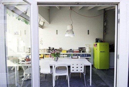 В преддверье зимы нам особенно хочется согреть интерьер яркими цветами и насыщенными оттенками! Почему бы, в таком случае, не добавить и в кухню выразительный цветовой акцент – яркий цветной холодильник. Хотя современный дизайн бытовой техники уже давно отошел от традиционного оформления холодильников исключительно в белом цвете, в повседневной жизни цветные холодильники мы встречаем нечасто. Чаще всего наши кухонные помощники оказываются белыми, стальными или кремовыми – удобных, но довольно скучных цветов. Однако ничто не мешает нам отойти от этого стереотипа, ведь и современные двухкамерные холодильники, и винтажные модели прекрасно смотрятся в разных цветовых вариациях. Яркий холодильник в интерьере кухни – это выразительная, даже немного китчевая деталь, которая, в то же время, может внести разнообразие в уже привычный интерьер. Но где же взять цветной холодильник, если в магазине вы смогли купить только обычный белый? Самый простой способ – покрасить холодильник краской из баллон