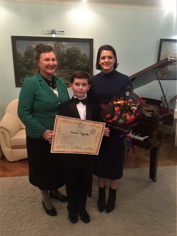 После возвращения из Брюсселя Кости Цыганкова Наталья Костенко встретилась с ним, педагогами, мамой и бабушкой юного пианиста в межшкольном эстетическом центре г. Краснодара, где мальчик занимается музыкой.