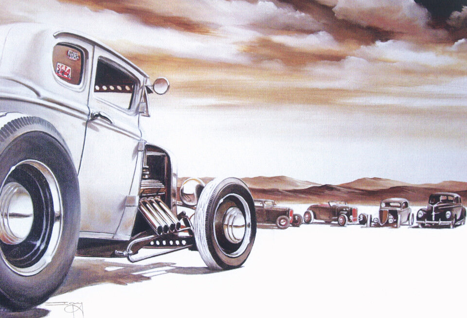 Однажды, в 1932м, ребята отправились на этом Форде на нелегальные гонки на высохших озёрах, которые проводились там уже с 20-х годов. По пути их родстер сломался, но им удалось добраться до цели на попутном новеньком Model-A, в компании ехавших туда же ровесников. Еще пару часов поездки, и автомобиль в лунном свете выехал на белую поверхность высохшего озера. Это зрелище само по себе произвело на Валли неизгладимое впечатление.
