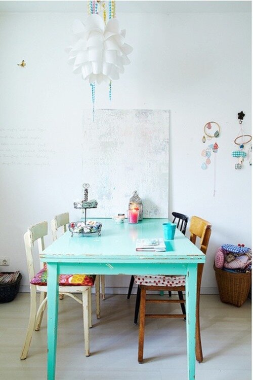 Говорят, что яркие цвета улучшают аппетит. А, кроме того, повышают настроение того, кто в этой кухне готовит вкусности для всей семьи. А это значит, что сделать интерьер кухни ярким, особенно поздней осенью, просто необходимо! Сегодня мы предлагаем вам шесть недорогих идей для яркой разноцветной кухни. Яркая кухонная мебель Нет, мы не предлагаем вам выбросить вашу старую кухню и купить новую, поярче. Есть более бюджетный вариант: новые фасады. Вы можете перекрасить кухонные шкафы в яркие цвета или заказать изготовление фасадов из мдф – в обоих случаях интерьер кухни полностью изменится. Разноцветная рабочая поверхность Если в вашей кухне рабочая поверхность над плитой и столом не отделана плиткой, можно сделать из нее яркий цветовой акцент: пластиковая рабочая поверхность, наклейки на стену или отделка мозаикой могут сделать кухню ярче и жизнерадостнее. Цветные кухонные аксессуары Сейчас практически каждый производитель предлагает в своем ассортименте кухонные аксессуары и посуду ярких