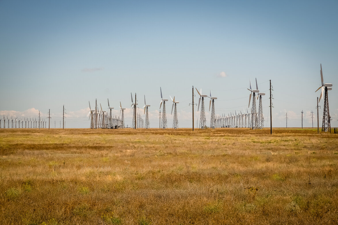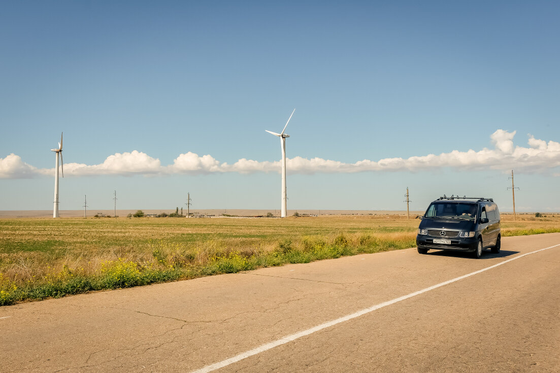 отправились в место под названием Большой и Малый Атлеш. Так как в районе Штормового равнинная местность и постоянно дует ветер, там стоят ветряки. Правда крутились из них единицы.