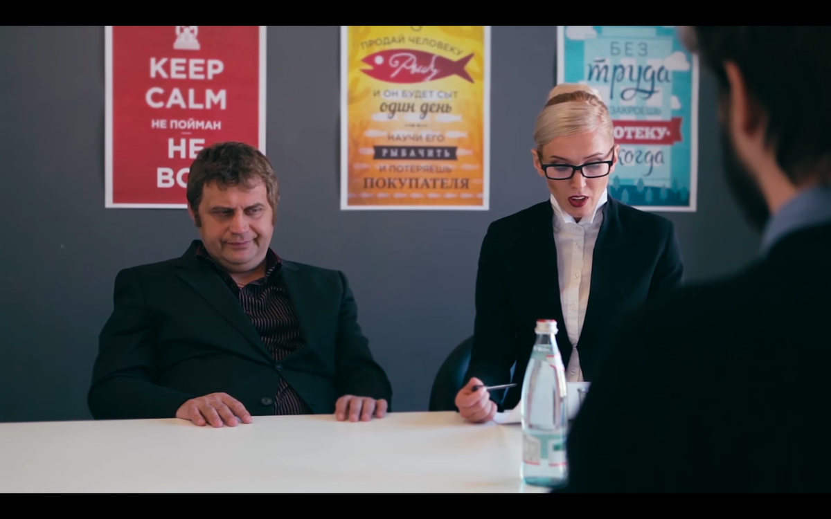 Поздоровавшись и соблюдя все необходимые «очень приятно», мы сели во вращающиеся кресла и приступили к собеседованию. Первые три минуты Степан, добро улыбаясь, задавал мне общие вопросы, а я честно на них отвечал. Бронислава же молча изучала мою анкету, и по мере прочтения её худое лицо приобретало всё более отсутствующее выражение. Наконец она не выдержала и, перебив Степана, произнесла: