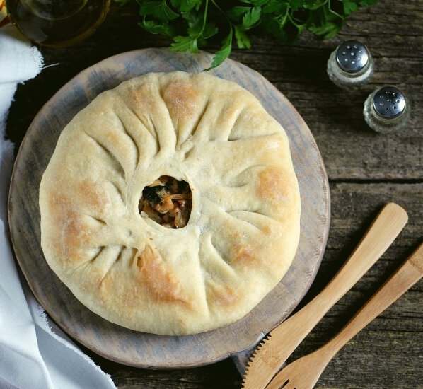 Масло растительное - 1 ст.л. ПРОЦЕСС ПРИГОТОВЛЕНИЯ Картошка с курицей, запеченные в тесте, - очень простое в приготовлении, но очень вкусное блюдо. По вкусу это что-то среднее между самсой с мясом или кубдари. Хрустящее тесто и начинка из картофеля с курицей идеально сочетаются. Блюдо может быть закуской, уличным перекусом или самостоятельным блюдом. Подавать такое блюдо можно как в горячем, так и в холодном виде. Для приготовления картошки с курицей в тесте в духовке подготовьте продукты по списку. Картофель помойте, отварите до готовности в мундире, остудите. Срежьте кожу и удалите кость в куриных бедрах. Разогрейте в сковороде масло, обжарьте в нем нарезанный полукольцами лук, добавьте н