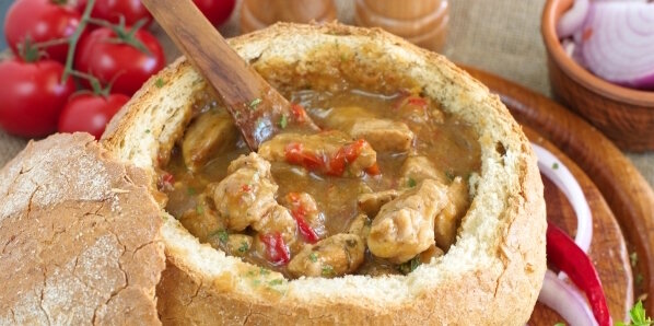 Паприка красная молотая - 1 ч.л. ПРОЦЕСС ПРИГОТОВЛЕНИЯ Если вам повезло побывать в Чехии, то вы непременно отведали гуляш в хлебе по-чешски, поскольку пройти мимо этого блюда в меню просто грех! Гуляш по-чешски - это очень вкусное мясное блюдо, что-то между густым супом и мясной подливой. Готовят гуляш в разных городах Чехии по-разному, я пробовала три разных варианта: гуляш с кнедлями, гуляш в хлебе и гуляш, приготовленный с добавлением чешского пива. Все три варианта мне понравились, но больше всего пришелся по вкусу именно вариант гуляша в булке. Подготовим все продукты по