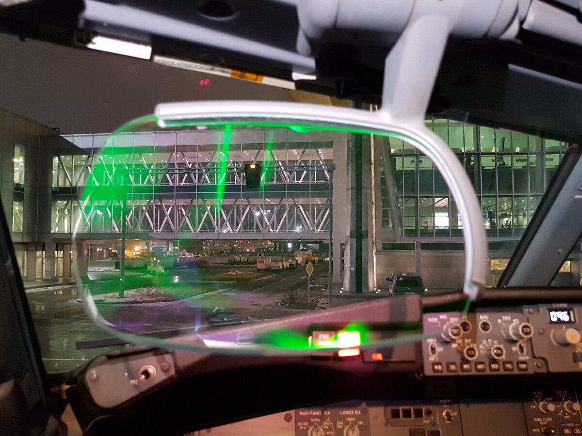 Для того, чтобы пилот не отвлекался на перенос взгляда с приборной доски наружу, в природу, на боевых самолётах ставят индикатор отображения информации на фоне лобового стекла. На гражданских же Боингах-737 NG для этого ставят Head-Up Display. Он представляет собой прозрачное толстое стекло, шарнирно закреплённое выше лобового стекла кабины, внутри неё. Для работы оно откидывается вниз, и мягкий чехол с него снимают. Яркость регулируется. Проецируется на него информация с помощью проектора над головой пилота. На виденном мной самолёте эта система была деактивирована. И есть она только у капитана.