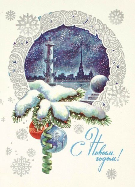 Таким представал на советских новогодних посланиях Ленинград: иногда красочный, иногда монохромный, но всегда зимний и праздничный