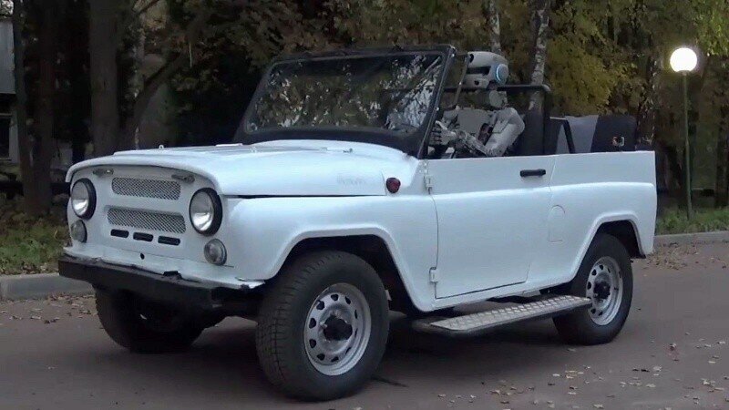 Путь УАЗа к беспилотному будущемы был преодолен стремительно: вначале при помощи УАЗов всего лишь запускали беспилотники, потом робко внедрили системы помощи водителю, затем настал этап беспилотных УАЗов и вот как вершина всего - робот-андроид который может заменить водителя.