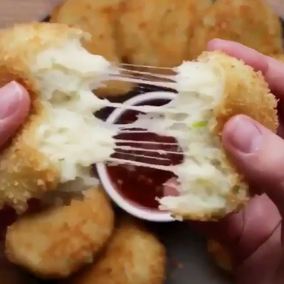 - Яйца Приступим к приготовлению. 1. Необходимо почистить и отварить картофель. Растолочь его. 2. Теперь добавляем тертый сыр. На 1 кг картофеля не менее 300гр сыра. 3. Добавляем зелень, соль, перец. 4. Тщательно перемешиваем и лепим небольшие шарики. 5. Получившиеся шарики окунаем в муку, затем в яйцо и потом в панировочные сухари. 6. Обжариваем наши шарики и выкладываем на стол. Приятного аппетита! P.s. Если вам понравились мои рецепты и Вы хотите чаще их видеть, тогда подписывайтесь и ставьте лайки.