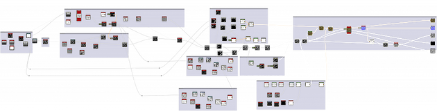 При работе с Rend, а точнее с текстурами и ассетами, используются различные варианты, от ручной работы до разработки текстур, используя Photoshop, Zbrush и набор Allegorithmic Substance. График узлов для обработанной процедурами текстуры в Substance Designer.