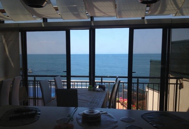 Продается огромный особняк, находящийся в знаменитом городке Созополь в 30 км с г Бургаса,в престижном районе-Буджака с участком 6 соток,в Удивительном спокойном и уединенном участке у самого берега моря-океана с собственной бухтой и пляжем.Жилье - 320 м2,с участком 660м2, 2х этажный с солярием под небом на 3-ем этаже,с местом для стоянки в 3 машиноместа. Жилье целиком мебелированное, с 4 жилыми комнатами,с 3 санузлами.Удобная и просторная кухня-трапезная с баром и местом для шашлыка с общим входом,объединенным с главным переходом .С края моря-океана- витражные окошки с типом панорамы.На первом этаже - комната для гостей 80м2 с камином с дровами, отапливается жилье электрокотлом. Существует спа с российской парилкой,хамамом, умывальными и бассейн. Водоем в дворе с переливом.