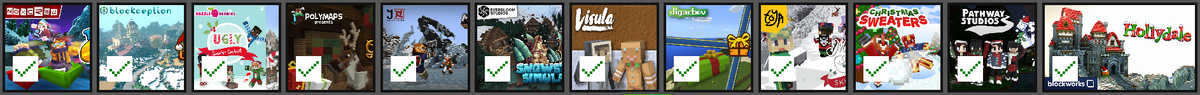 Настало время двенадцатого, заключительного, подарка новогодней акции «12 дней Майнкрафта» ! На этот день разработчики припасли симпатичную карту от одного из самых успешных карто-строителей — команды Blockworks. Карта представляет собой отлично проработанный замок с, расположенной неподалеку, деревенькой. При старте, игрок появляется в деревеньке. И я даже не сразу понял, что есть какой-то замок. А вот новогоднюю ёлку трудно не заметить. Я полез в горы, и увидел какое-то отдалённое строение. Естественно я сразу направился в том направлении, тем более, что обнаружилась дорожка ведущая прямо к замку. Скришоты замка приводить не буду — тогда вам нечего будет рассматривать. Покажу лишь интересную конструкцию, которая мне очень понравилась — доспехи, которые стоят в одном из углов замка.