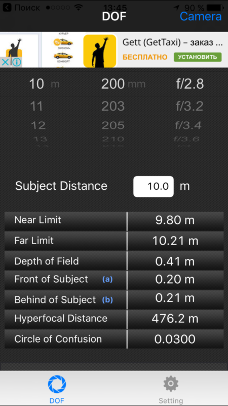 Поскольку светочувствительность(ISO) современных цифровых камеркамеры практически резиновая вплоть до 6400 единиц, то второй проблемой будет выбор диафрагмы. Для точки отсчета рекомендую использовать калькулятор Глубины Резко Изображенного Пространства(ГРИП), у меня на айфоне стоит программа F-Stop, все цифры запомнить невозможно и порой использую его, как двоечник шпаргалку. Сейчас надо будет включить пространственное мышление и понять о чем я говорю. Например, дано: мотоцикл с мотоциклистом, длина 2 метра, ширина 1 метр (условные размеры, прикинутые на глаз), включаем калькулятор, устанавливаем тип вашего фотоаппарата или матрицы, вводим популярную величину телеобъектива 200mm, минимальную диафрагму f2,8 (лирическое отступление: жаль, что у меня нет такого волшебного объектива), расстояние 10 метров до объекта и видим, что глубина резкости составляет всего 0,41 метра, что ничтожно мало для кадра во всех проекциях, конечно, можно получить фотографию мотоцикла в профиль, но такое бывает редко во время гонок да и выглядит «плосковато», так что делаем выбор либо в пользу более дальнего расстояния съемки или значительно закрываем диафрагму.