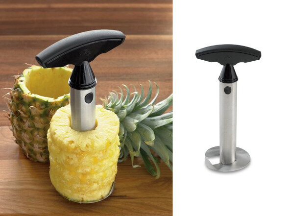 В этой статье я подобрал одни из самых интересных гаджетов, которые помогут хозяйке справиться с любой проблемой на кухне. Я думаю, многие захотят что-то купить из этого списка. Все эти гаджеты упростят вам приготовление еды. 1. Ананасовый слайсер Если вы эффектно хотите подать ананас к столу, то этот прибор именно для вас. Или же вы просто хотите сделать консервацию на зиму в такой оригинальной нарезке. Но если вы настоящий ананасовый маньяк, то этот прибор будет нужный на вашей кухне. 2. Супер-ножницы для зелени. Достаточно неплохой девайс. Очень удобная вещь, которая "пошинкует"всю вашу зелень сразу в блюдо. И самое главное - безопасность, с ними вы никогда не поранитесь. Проще говоря, применений у этих ножниц много. Включайте фантазию. 3. Спрей для цитрусовых. Больше не нужно выжимать сок с лимона вручную, а потом добавлять его в блюдо. Все просто, это обычная распыляющая «пшикалка». Полезный девайс, я думаю все захотели. 4.Машинка для кукурузы. Ну это вообще шедевр. Отварили