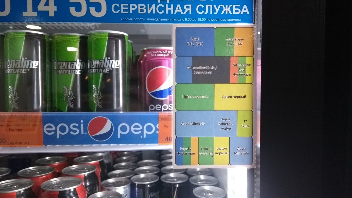 Вчера на одной из АЗС обратил внимание на цветную наклейку на двери холодильника. Подошел поближе и рассмотрел данную наклейку: Вот сама наклейка со всеми подробностями: Конечно же напитки стояли в холодильнике вперемешку, а ведь на исследование на то, где и какой напиток компания потратила кучу времени, отследила поведение тысячи покупателей, привезла и установила холодильник за свой счет, только бы их напитки продавались на данной АЗС и даже первое полное заполнение холодильника от компании - бесплатно для владельца магазина/сети магазинов. И что вы думаете? Конечно же напитки стояли не по схеме. Результат данной выкладки товара напрямую сказывается на продажи напитков и изучение поведения и психологии покупателя - напрямую зависит продажа данных банок и бутылок. От неправильной выкладки товара в холодильнике страдает только владелец магазина или как в данном случае - владелец АЗС, продавая меньше напитков, так как они стоят неправильно. Все же, хорошую вещь разработали, схему прави