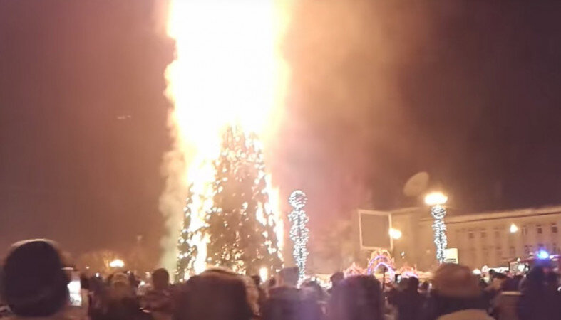 Многие жители Южно-Сахалинска стали свидетелями возгорания Новогодней 25 метровой ёлки. Горожане, пришедшие на площадь и увидевшие данный инцидент, не испугались пылающего дерева, а стали снимать на камеру мобильных телефонов. Предполагается,что ёлка загорелась из-за запущенного по неосторожности фейверка рядом с ёлкой.