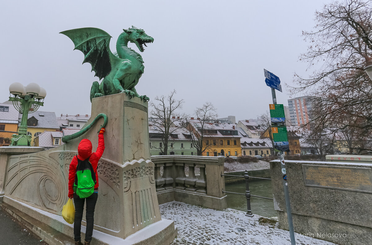 Когда по драконовому мосту в Любляне проходит девственница, все четыре дракона начинают вилять хвостом… По крайне мере, так гласит народная молва… Этот самый мост построен в 1901 году и выдержан в традициях Венского сецессиона. Сначала его, конечно называли мостом Франца-Иосифа, в честь австрийского императора, но драконы, украшавшие его, были более известны и знамениты;) По легенде, герой Ясон из «Иллиады и Одиссее» Гомера, возвращался с поисков золотого руна по Дунаю и его притокам. А один из притоков, как раз река Любляница. В общем, он победил жившего здесь дракона. Сначала душа дракона обосновалась в замке, который стоит на холме с 12 века, а теперь живет в одном из драконов на мосту… И сам дракон изображен- на гербе города и на всей сувенирной продукции. Что касается замка, то стены построили в 15 веке, а сторожевая башня в 18 веке. Как и водится изначально в нем жили правители, потом как он использовался как оборонительное сооружение, потом там была тюрьма… На реставрации замо