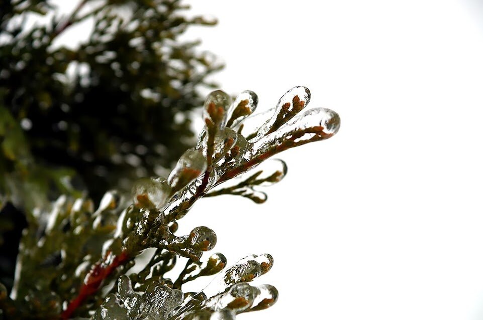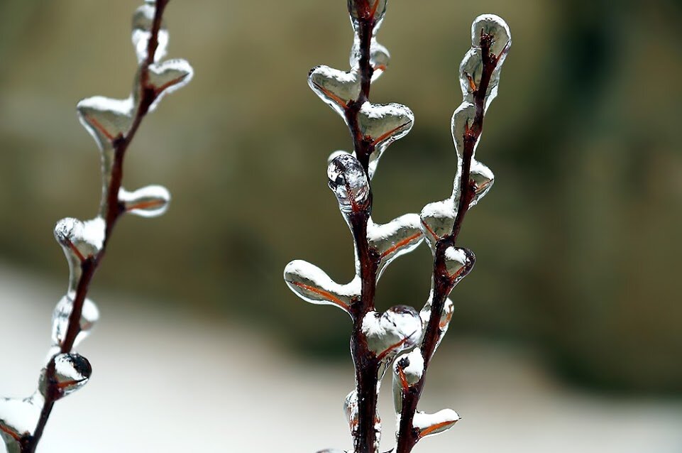 Будто по мановению волшебной палочки. Ибо подо льдом - не мертвая и не уснувшая природа. Подо льдом не ожидавшие ничего подобного листочки. Ветки, которые застали врасплох. Оно куда-то гнулось, о чем-то мечтало, к чему-то тянулось. И вдруг, в один единственный момент, оказалось внутри ледяного кокона.