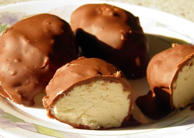 Приготовим сырки по рецепту, который вполне прост, а список продуктов доступен, но самое главное, что при минимуме усилий, мы получаем лакомство ничуть не хуже магазинного, с пониженным содержанием калорий. Ингредиенты 380-400 гр. однородного творога 0% жирности 30 гр. сливочного масла 30 мл сливок 100 гр. сахарной пудры 100 гр. молочного шоколада Ванилин Приготовление В миске смешиваем до однородности творог, сливки, размягченное сливочное масло и сахарную пудру. Из получившейся массы слепим заготовки в виде шариков, брусочков или по вашему желанию. Отправляем в морозилку на 20-25 минут, а пока готовим глазурь. В микроволновую печь отправляем разломанный на мелкие кусочки шоколад, залитый сливками, растопим его. На тарелку выкладываем пергаментный лист. Достаем творожные заготовки из морозилки. Обваливаем в жидкой глазури и вынимаем при помощи двух вилок на пергамент, убираем на пару часов в холодильник. Приятного аппетита!