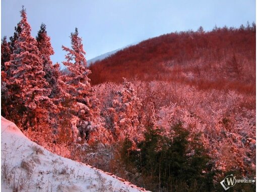 Высоко в горах и приполярных областях Земли идет красный и розоый цвет. Необычный оттенок снежинкам придает водоросль хламидомонада снежная.