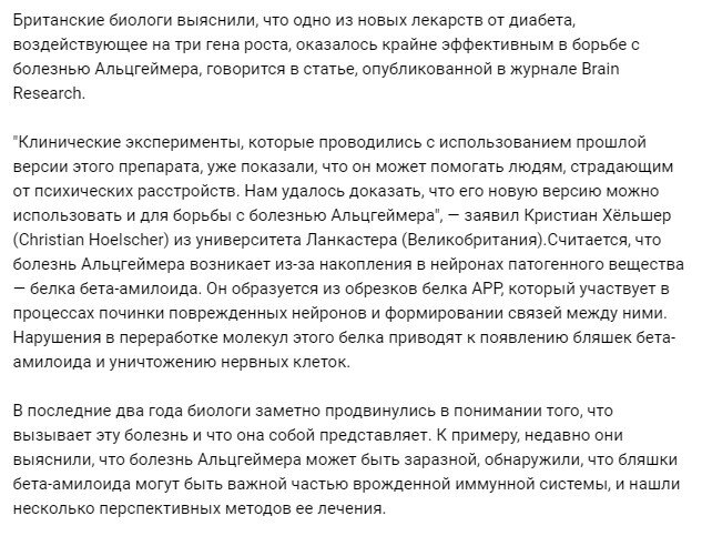 Биологи нашли неожиданное лекарство от болезни Альцгеймера🔎