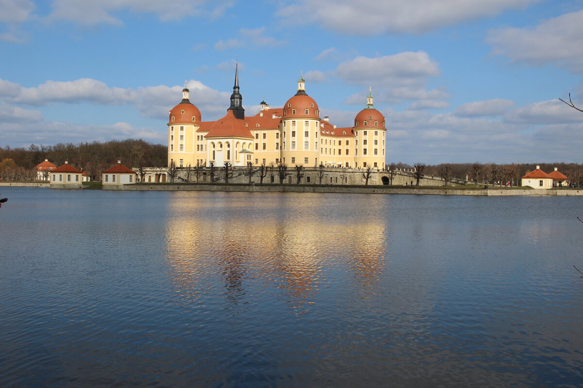 - Добрый вечер! А могу я увидеть Марион? Марион – хозяйка дома, в котором мы сняли 2 этаж. - Шульдиге майн герр, но Марион уехала отмечать пасху к родственникам! Опа! Полный Штрюппен! - Вы не переживайте, я вас провожу. Она мне оставила все указания на ваш счет. Поднимаемся на второй этаж и понимаем, что с жильем мы угадали. Гостиная, спальня, детская, кухня и санузел. Все в наличии. А, самое главное, балкон и потрясающий вид на самый знаменитый саксонский замок – Кёнигштайн. Вот тебе и деревня! Утром мы посмотрели на эту деревню. Язык не поворачивается так ее назвать. Дорожки асфальтированы, участки ухожены, стриженый газон и цветники в наличии (координаты нашей базы - 50.9318699063, 14.0484681646). Наутро светило яркое солнце. За завтраком обсуждаем план на день. - Так что ты там говорил про профессора Плейшнера? - Это сюрприз. Для начала отправляемся в Морицбург. Дорога вьется среди живописных холмов и симпатичных деревушек. Всего какой-то час и мы приехали. Собственно, мы так и пл