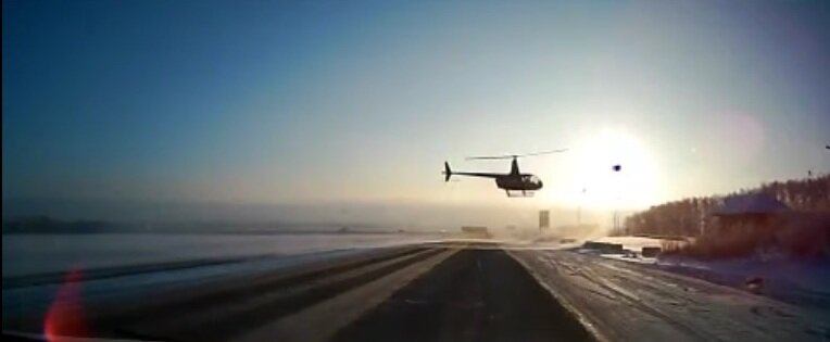 В Башкирии в районе старой заправки со стороны Федоровки едва не случилось ДТП с участием легковушки и вертолета.