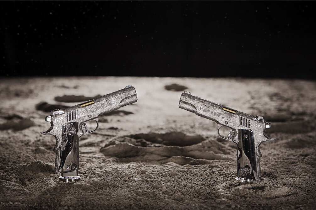 Для поклонников легендарного пистолета Кольт 1911 большим событием стала ежегодная выставка Национальной стрелковой ассоциации США 2016 года, где представили набор пистолетов, изготовленных из куска металла, упавшего на Землю из космоса много лет назад.