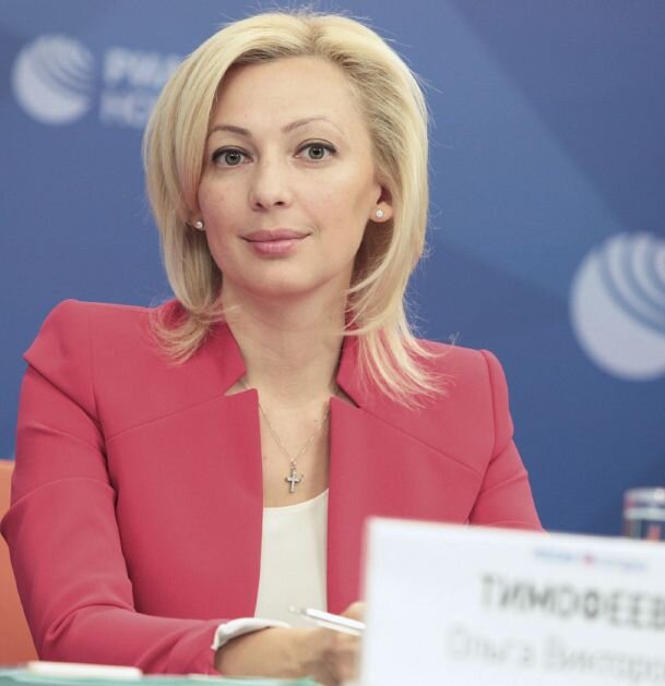 Ольга Тимофеева. Родилась 19 августа 1977 г. в Ставрополе. В 1999 г. окончила юридический факультет Ставропольского государственного университета, в 2000 г. — факультет «Финансы и кредит» Ставропольской государственной сельскохозяйственной академии, в 2004 г. — факультет профессиональной переподготовки в Государственном техническом университете по президентской программе управленческих кадров (специальность «менеджмент»). С 1996 г. — на телевидении: на каналах АТВ и «РЕН ТВ-Ставрополь». Автор и ведущая программы «Время говорить», стаж работы в прямом эфире — более 20 лет. В 2007 г. стала лауреатом Всероссийского ТВ-конкурса «ТЭФИ — регион» в номинации «Лучший интервьюер». Член Академии российского телевидения. В 2008 г. и 2011 г. побеждала на выборах депутатов Ставропольской городской думы, возглавляла комитет по информационной политике, взаимодействию с общественными и ветеранскими организациями. С 22 мая 2012 г. — депутат Государственной думы РФ VI созыва, член Комитета по информационной политике, информационным технологиям и связи. 18 сентября 2016 г. переизбрана депутатом Госдумы VII созыва, председатель Комитета по экологии и охране окружающей среды. 11 октября 2017 г. избрана заместителем председателя Госдумы. Член фракции «Единая Россия». Сопредседатель Центрального штаба Общероссийского народного фронта. Награждена медалью ордена «За заслуги перед Отечеством» II степени, медалью «За заслуги перед Ставрополем».