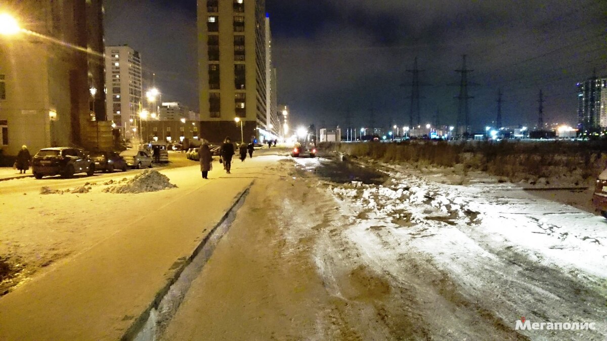 В связи с сложившейся критической ситуацией, касаемо безопасности дорожного движения по проспекту Авиаторов Балтики, силами МАУ "МУК" проводятся мероприятия по водоотведению и расчистки наледи.