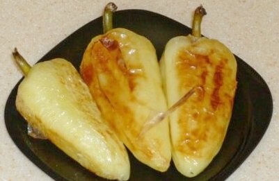 И так, способ приготовления очень прост, перец промыть под водой.Ставим сковороду на огонь и ждем пока она нагреется, затем укладываем перец, солим его и обжариваем с обеих сторон до красивой корочки.Чеснок натереть на самой мелкой терке.Выложить перец на блюдо, посыпать сверху чесноком или можно натереть его, полить сверху масло на котором жарился перец. Приятного аппетита.