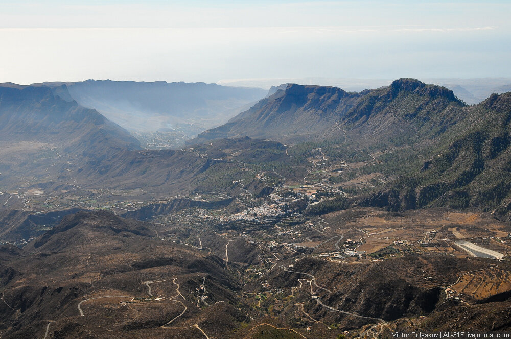 А тут можно в разных местах кадра находить фрагменты этой дороги, выписывающей сотни петель и разворотов. Вдалеке же видна столица острова – Лас Пальмас.