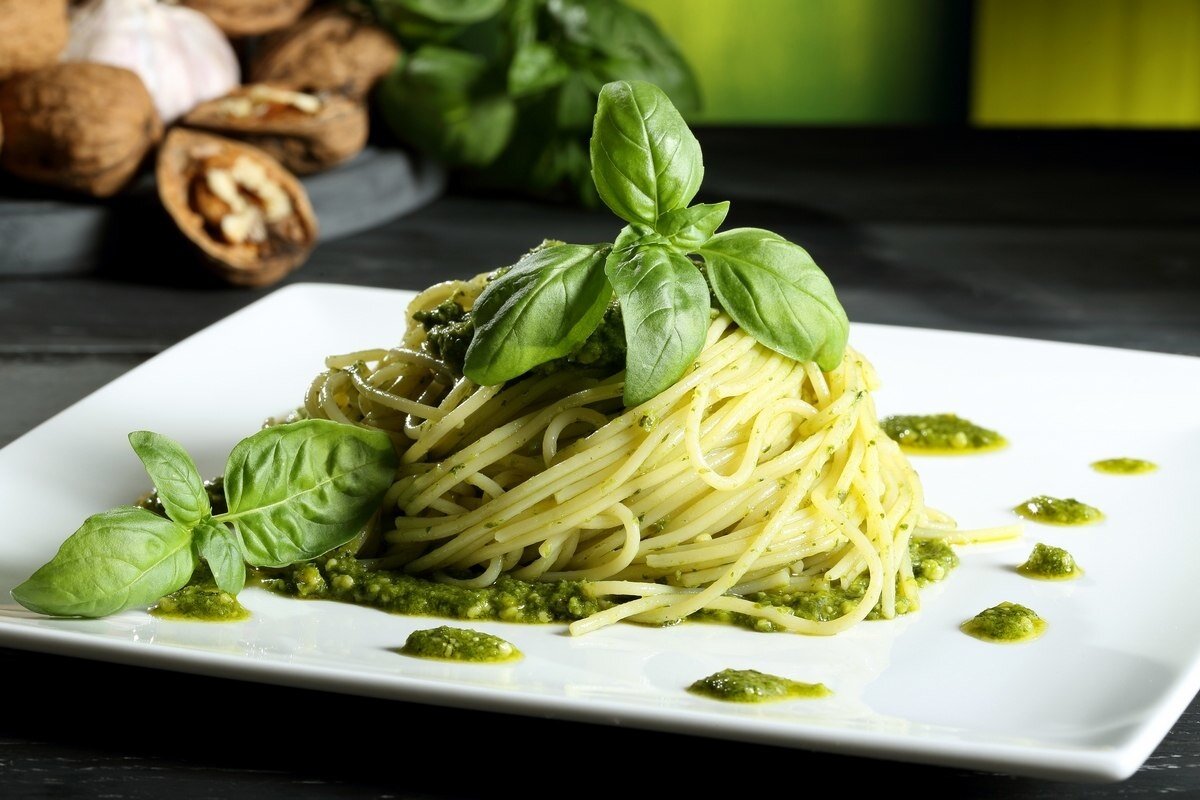 Вкусное и аппетитное блюдо. Ингредиенты: Макароны 1 пачка Песто 1 баночка Помидоры для украшения Базилик Сыр по вкусу Соль по вкусу Приготовление: Макароны отварить в подсоленной воде, можно добавить в воду любимые специи. Затем слить воду и перемешать отварные макароны с песто по вкусу. Готовое блюдо выложить на тарелку и можно украсить помидором и базиликом, можно посыпать тёртым сыром. Приятного аппетита.