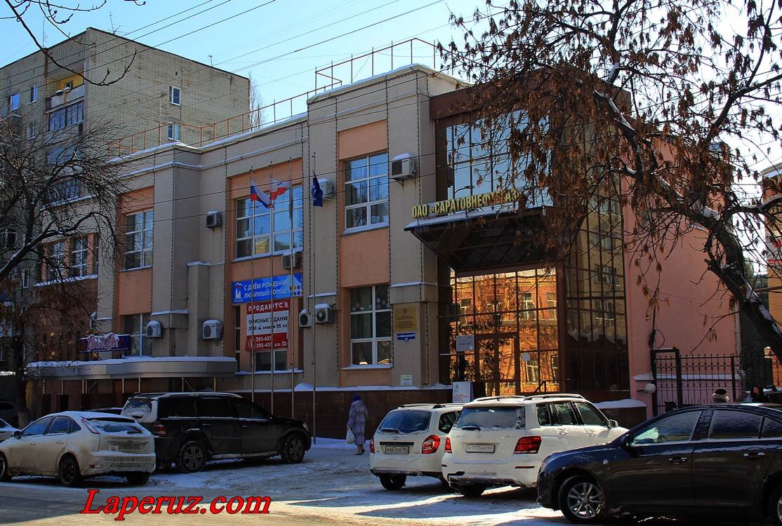 Этот дом архитектору К.А. Дулину заказал купец Отто Шмидт. Он происходил из семьи саратовских мукомолов и был общественным деятелем. Специалисты относят стилистику одноэтажного здания к модерну, готике и классицизму. В 1919 году, после национализации, здесь разместили 4-й эпидемический госпиталь Красного Креста. В годы Советской власти и в новейшее время здесь располагались различные конторы. В 1960-х годах бывший дом Отто Шмидта надстроили вторым этажом. В ходе реконструкции его фасад был практически обезображен и значительно упрощён. Кое-где во внутренних помещениях можно увидеть растительные орнаменты, фризы на античную тематику, панельные рельефы. В начале нынешнего столетия дом облицевали керамической плиткой. Эту и другие истории вы можете прочитать на сайте Laperuz.com