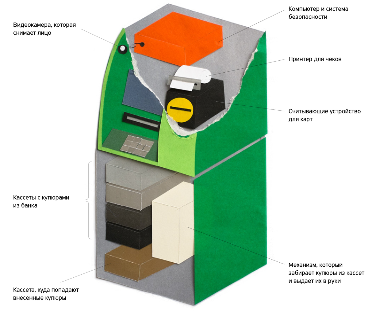 Великая и прекрасная шайтан-машина, дай денег! Ну, если пофантазировать, с такими словами можно подходить в банкомату. Пара кнопок, прекрасное жужжание и вот в руках красивые, новенькие купюры. Здорово! С виду банкомат устроен очень просто. Но внутри это достаточно сложная машина. Как оно там и можно ли обмануть банкомат расскажу сегодня. Просто говоря, банкомат - это сейф с компьютером. В сейфе, что логично, хранятся деньги. Их заряжают в специальные кассеты, которых в банкомате может быть 4 - 6 штук. Каждая кассета предназначена для определенного вида купюр и другие в них засунуть не получится - машинка выдаст ошибку. Поэтому все истории, что вместо 500 рублей народу выдали 5000 - художественный вымысел. Кассеты заряжают специальные сотрудники банка, которые проверяют купюры на качество и подлинность. В отделениях банка кассеты в банкомат вставляют сотрудники, за их пределами - служба инкассаторов. Банкоматы, которые принимают деньги, отправляют их в специальную кассету. Эти кас