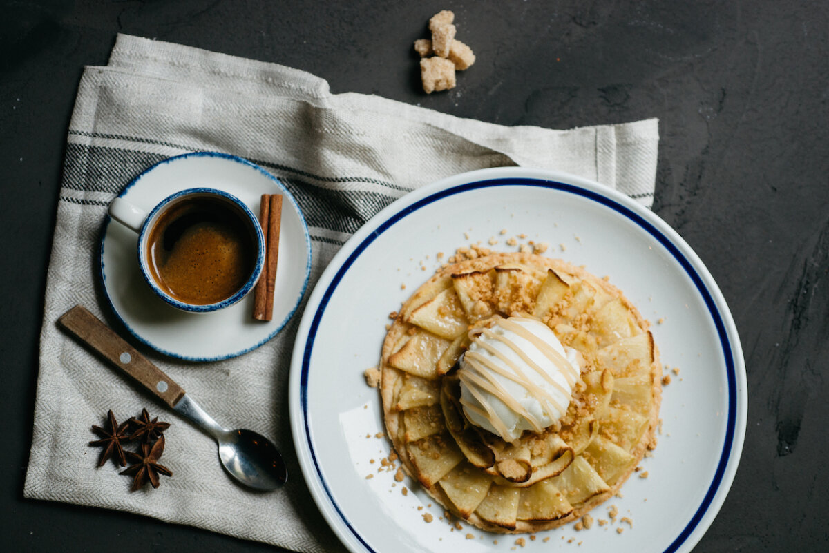 Рецепт от Константина Данковича, шеф-повара ресторана «Brisket BBQ». Удивительно вкусный пирог, простой и эффектный. Приготовьте и вы вернетесь к нему не раз! Удивительно вкусный пирог, простой и эффектный. Приготовьте и вы вернетесь к нему не раз! Ингредиенты Мука пшеничная — 25 гр Масло сливочное — 20 гр Креметте — 20 гр Яблоки зеленые — 250 гр Ванильное мороженое -1 шарик Сахар – 110 гр Вода – 30 гр Сироп глюкозы – 10 гр Сливки 35% — 130 г Приготовление Подготавливаем тесто. Сливочное масло комнатной температуры смешиваем с креметте, после добавляем муку и тщательно перемешиваем. Формуем тесто в виде шарика. Раскатываем тесто диаметром 14см, прокалываем тесто, чтобы при выпекании тесто не поднялось! Далее подготавливаем яблоки. Очищаем от кожуры, разрезаем пополам, удаляем сердцевину и нарезаем тонкими слайсами и бланшируем в сахарном сиропе. Остался карамельный соус. Для его приготовления используем: сахар,вода, сироп глюкозы, смешива