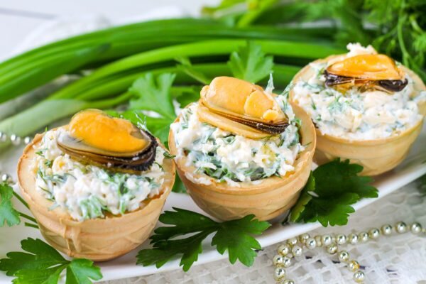 Никакой праздничный стол не обойдется без закусок. Они занимают большую часть всех блюд. В качестве отличной закуски выступают тарталетки с сыром и мидиями. Это отличное, вкусное и аппетитное блюдо можно приготовить в домашних условиях. Для приготовления такой закуски в тарталетках нужно минимум ингредиентов. Мидии можно самому замариновать, но для экономии времени целесообразней купить уже готовые. Начинку можно создавать из творога со свежей зеленью, твердого сыра или рикотты с майонезом. Если тарталетки будут приготовляться задолго до подачи на стол, то лучше выбрать песочные корзинки, если сразу же после приготовления, то можно воспользоваться вафельными корзинками. Ингредиенты - сто пятьдесят грамм твердого сыра;