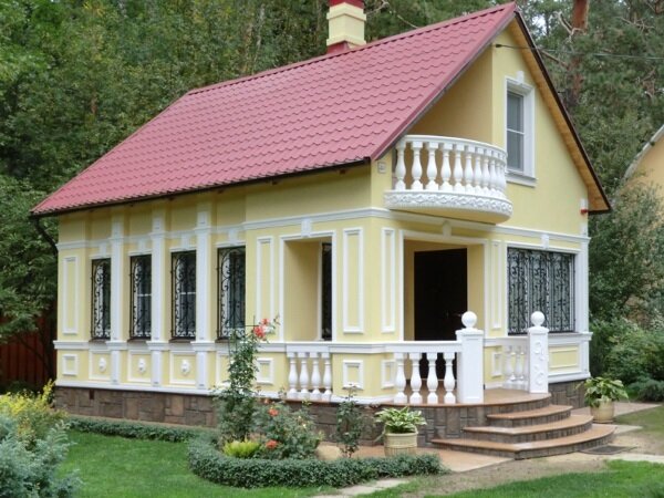 - Нанесение штукатурки на фасад предусматривает тщательное заделывание сложных участков, окон, дверных проемов, цоколя, углов дома, что станет гарантом, что квартира внутри будет комфортной.